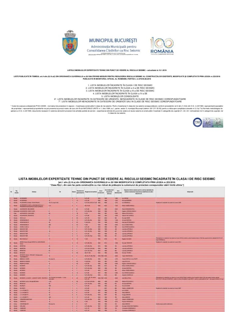 Primaria municipiului bucuresti a actualizat in 29 ianuarie 2015 lista cladirilor cu risc seismic din capitala.