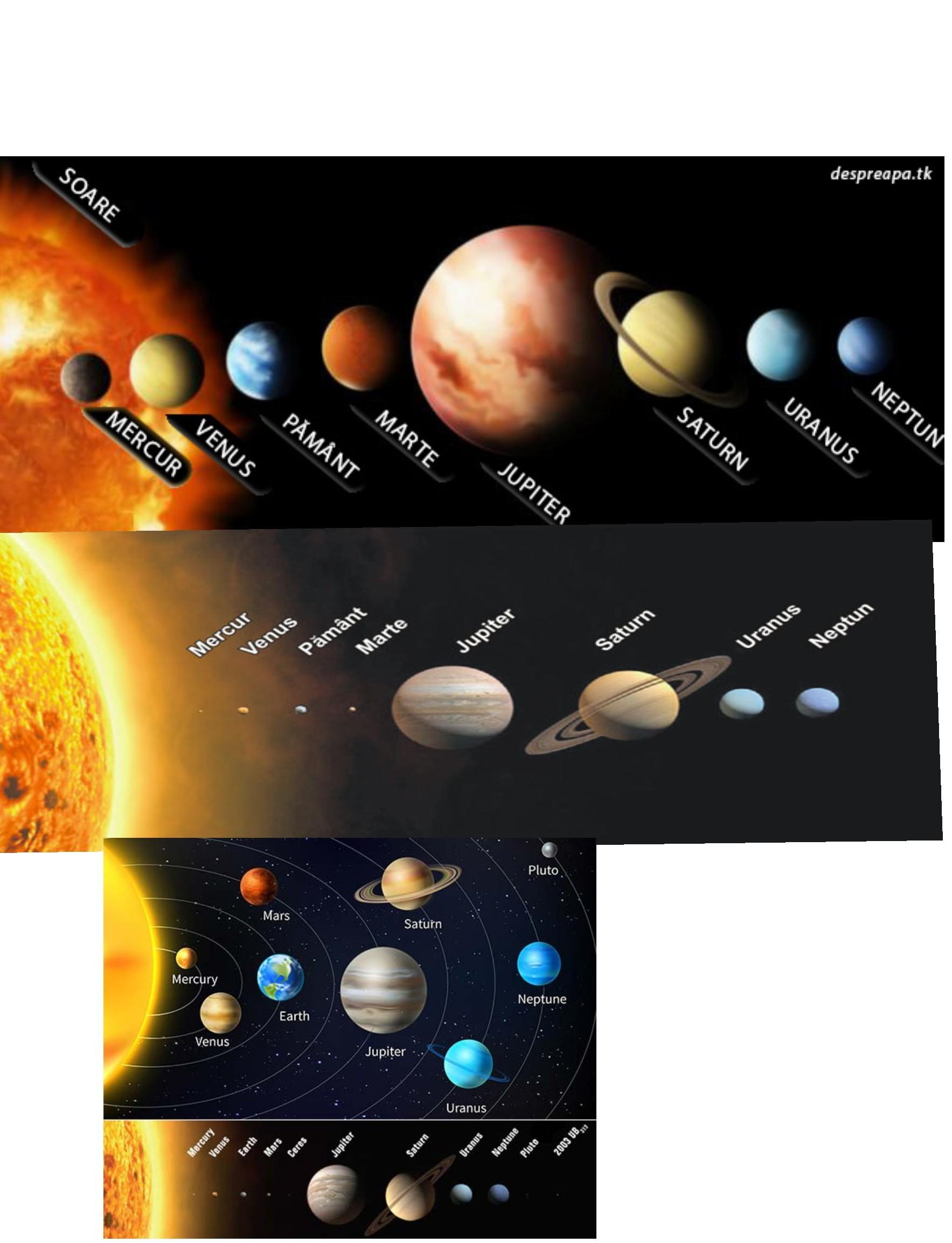 Cine nu știe ce este. Mercur, venus, pamant, marte, jupiter, saturn, uranus si neptun. Plansa sistemului solar ii face pe copii sa observe si sa invete ordinea in care sunt asezate planetele, dimensiunile acestora fata de pamant, . Legate de mişcarea planetelor sau sateliţilor din sistemul solar sunt . Plansa sistemului solar ii face pe copii sa observe si sa invete ordinea in care sunt asezate planetele, dimensiunile acestora fata de pamant, culoarea .